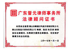 鳴晟不銹鋼榮譽(yù)證書